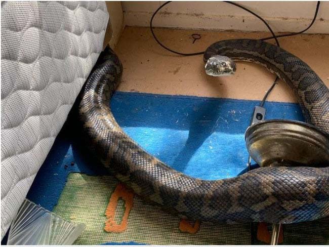 In a costly surprise that would scare the life out of most folks, two fat af carpet pythons have smashed a hole in a Brisbane man’s ceiling, falling through the hole into the man’s home. David Tait, the unlucky retiree who was host to the snakes, found the two reptiles in his home Monday morning. The two pythons measured 2.8m and 2.5m respectively, which literally sounds like something out of a horror film.