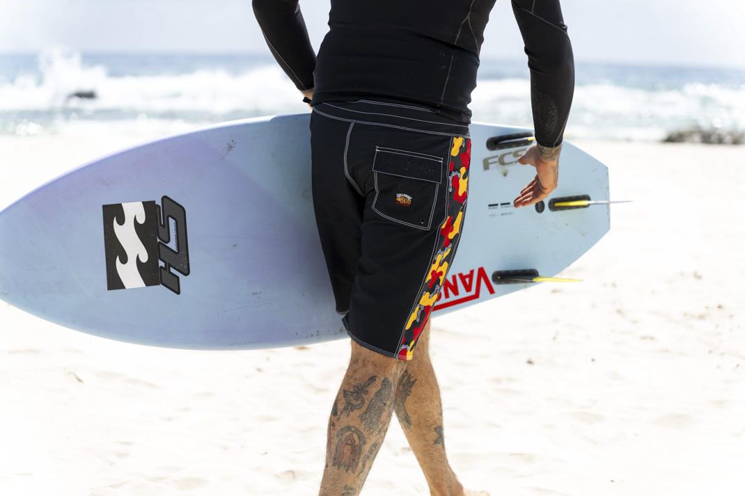 Whether it’s the playful tone of the campaign video – directed by Sam Brumby and also starring Billabong surfer Bodhi Simon – or Otis’ reimagining of traditional camo patterns, you can tell that he’s wanting to have fun with this one.