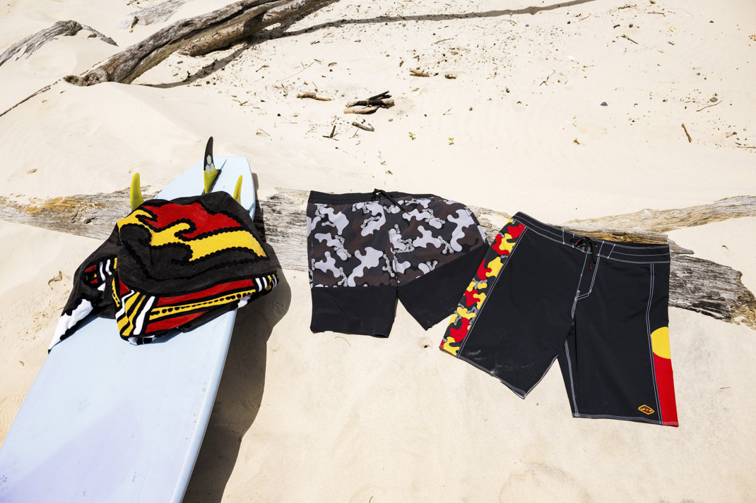The collection, which is anchored in his ancestry and identity as a First Nations artist, includes shirts, shorts, swimmers and accessories that are purpose-built for exploration and activity, be it in the ocean, river or the bush. A by-product of being designed by one of the country’s most in-demand artists means they, of course, also look rad.