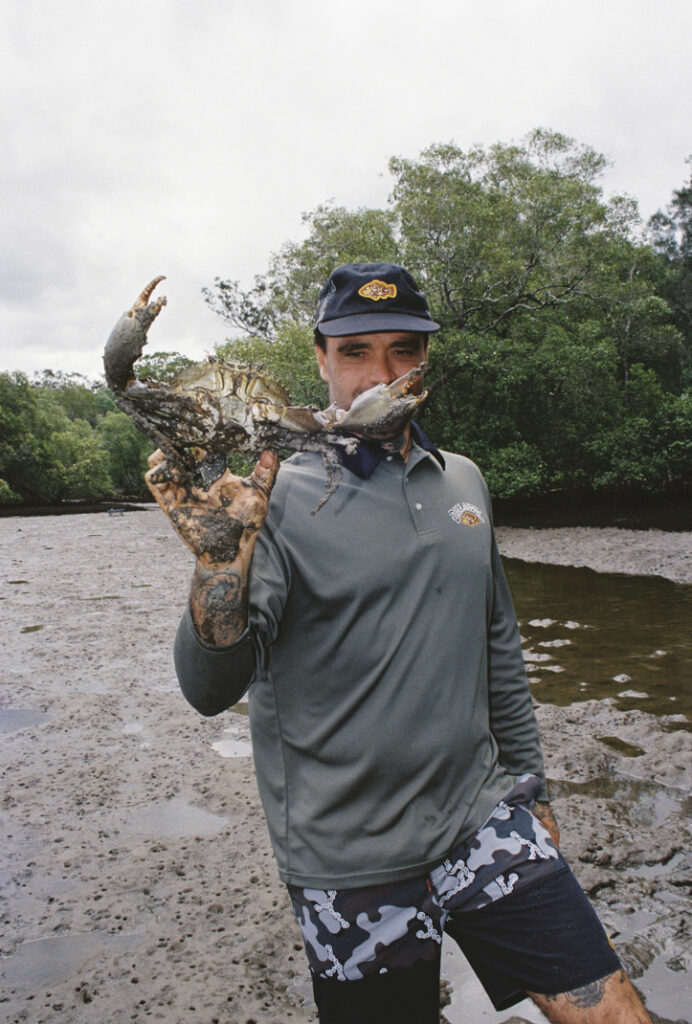 I’ve spent a lot of time fishing in estuaries, and the amount of snakes that I’ve seen swimming across the river, I just thought, ‘Oh fuck, it’d be cool to just incorporate a snake.’ And obviously the mud crab — I’m always eating mud crab out of the estuary. They just tied all together.