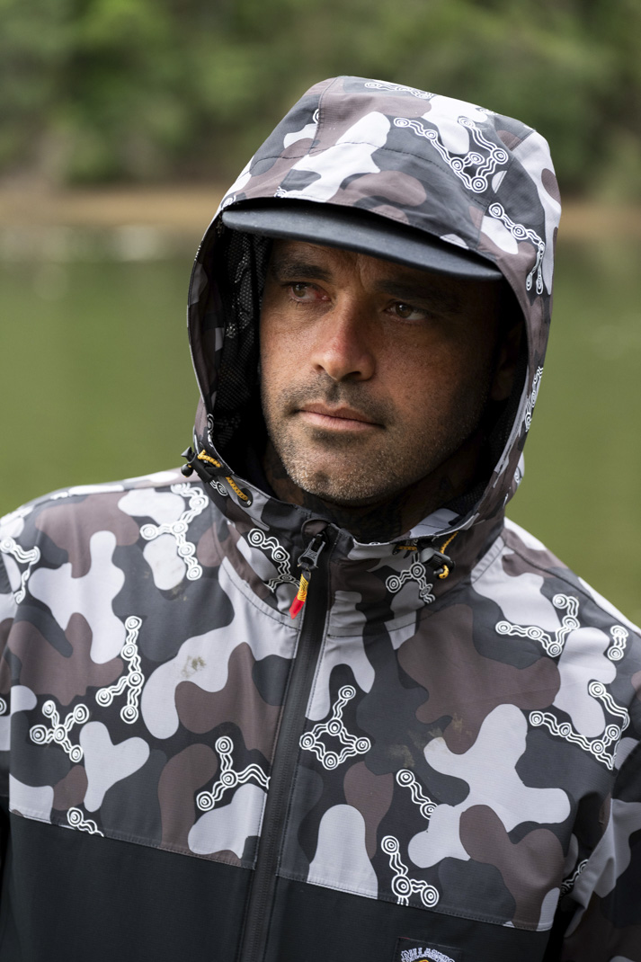 “This range is a bit different, it wasn’t so much culturally based. A lot of my other ranges, there’s a cultural story to it. This range I just wanted to have a bit of fun and just do something a bit different, something a bit more lighthearted. No matter what I do, it’s got a cultural connection to it anyway. I love camo, camo is one of my favorite patterns, so I was like, ‘Fuck, I just want to do a camo inspired by the mangrove jack.’”