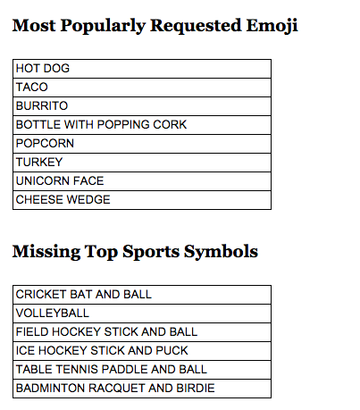 People in Bondi are currently rioting over the omission of an avacado and/or kale emoji. See the list below: