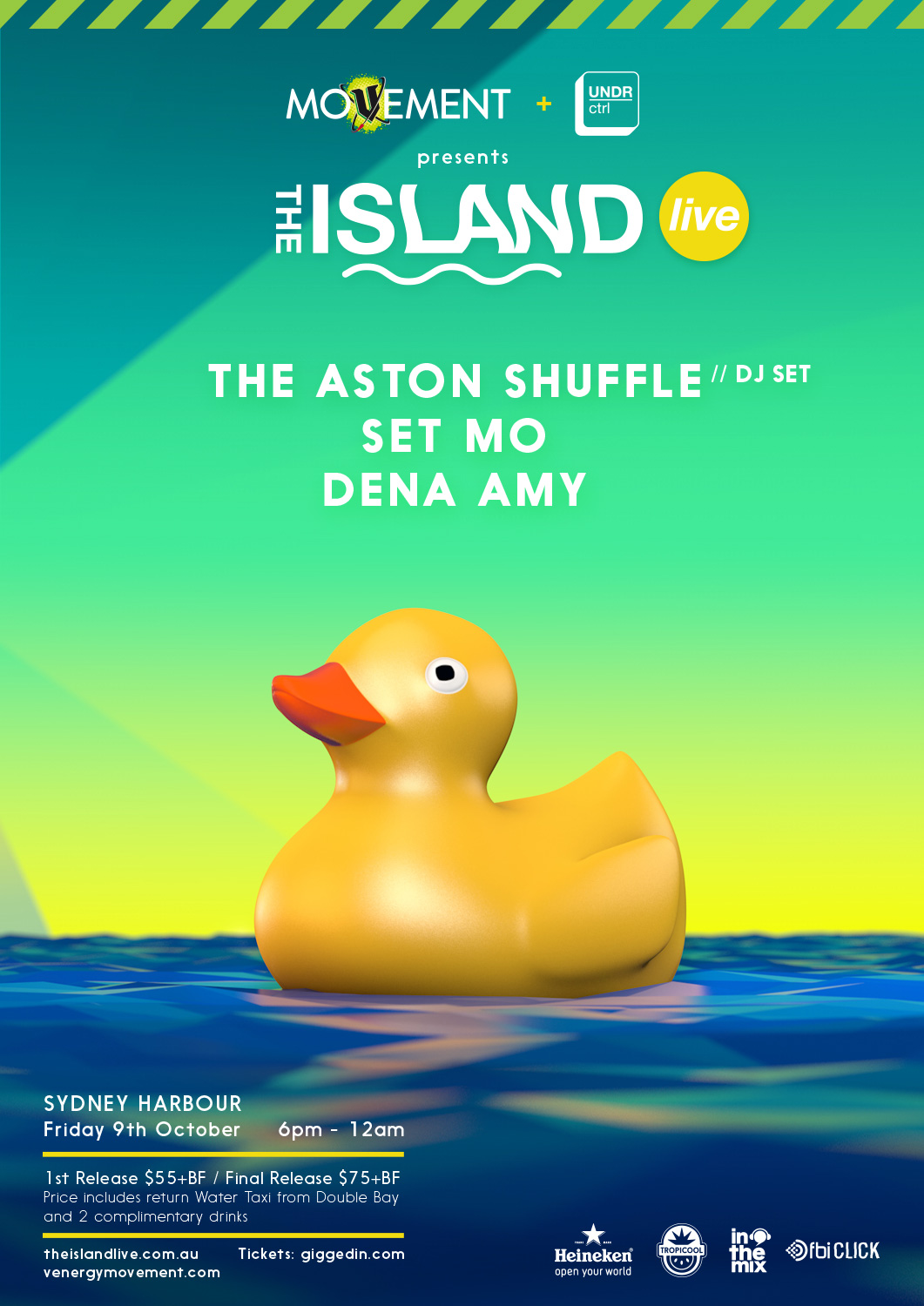 It all takes place on Friday October 9th, so yell ‘TGIF’ at the top of your lungs and hop on board a water taxi to The Island – which is included in your ticket price along with two complimentary drinks. Free taxis? Free alcohol? Fuck yeah!