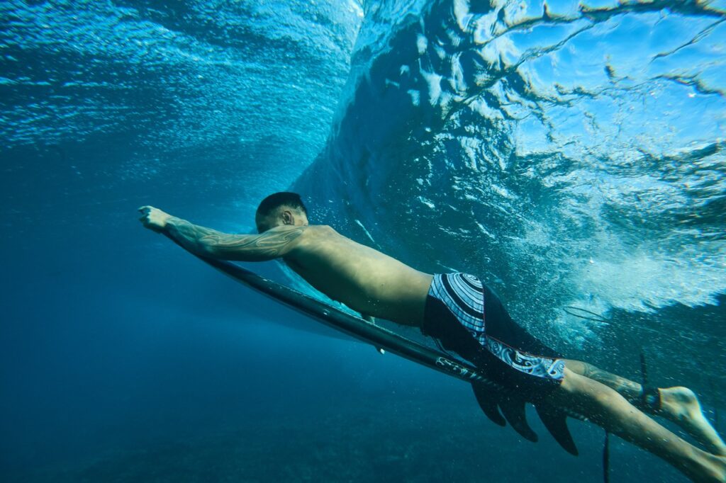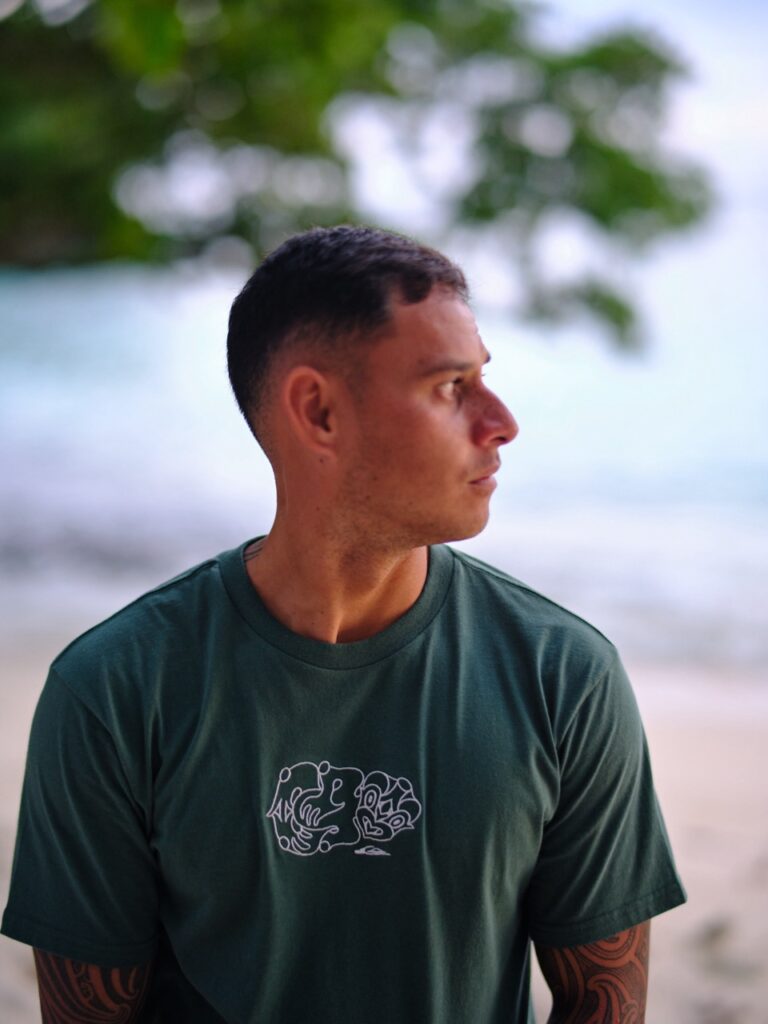 Throughout his career, Kehu’s focus has been on staying grounded in his heritage while championing his people. Born in Mt Maunganui, Aotearoa, the proud Māori has used opportunities to elevate his culture and celebrate the ocean, which brings us to the Tai Kehu Collection.