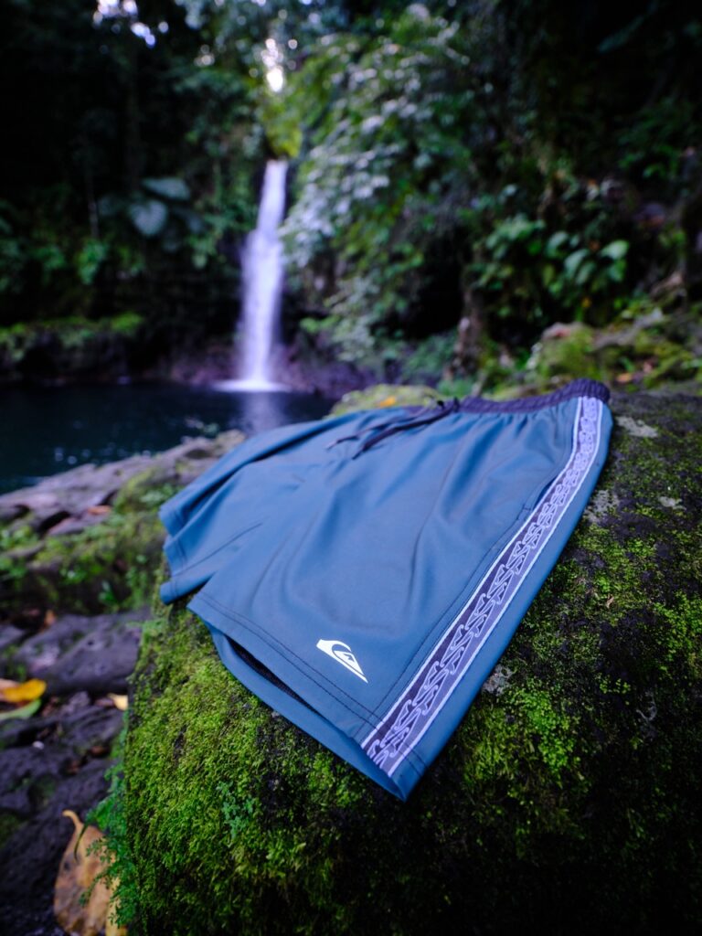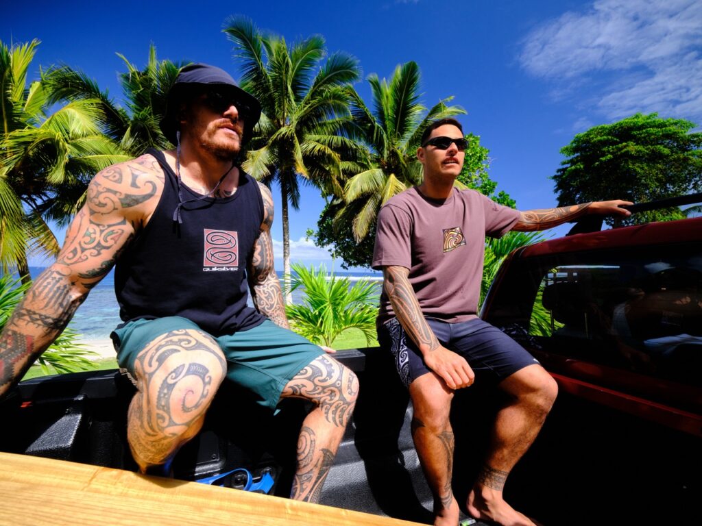 To source inspiration and help bring the concept to life, Quiksilver took Gibbs, Brooking and Butler on a journey through the Pacific, chasing waves while reflecting on their relationship with Moana and surfing’s history, past and present. That duality comes to life in Butler’s quiver from the trip — an Alaia board representing the sport’s earliest roots, a classic single fin symbolising surfing’s timeless soul, and a modern Sharpeye quad capturing its progressive future.